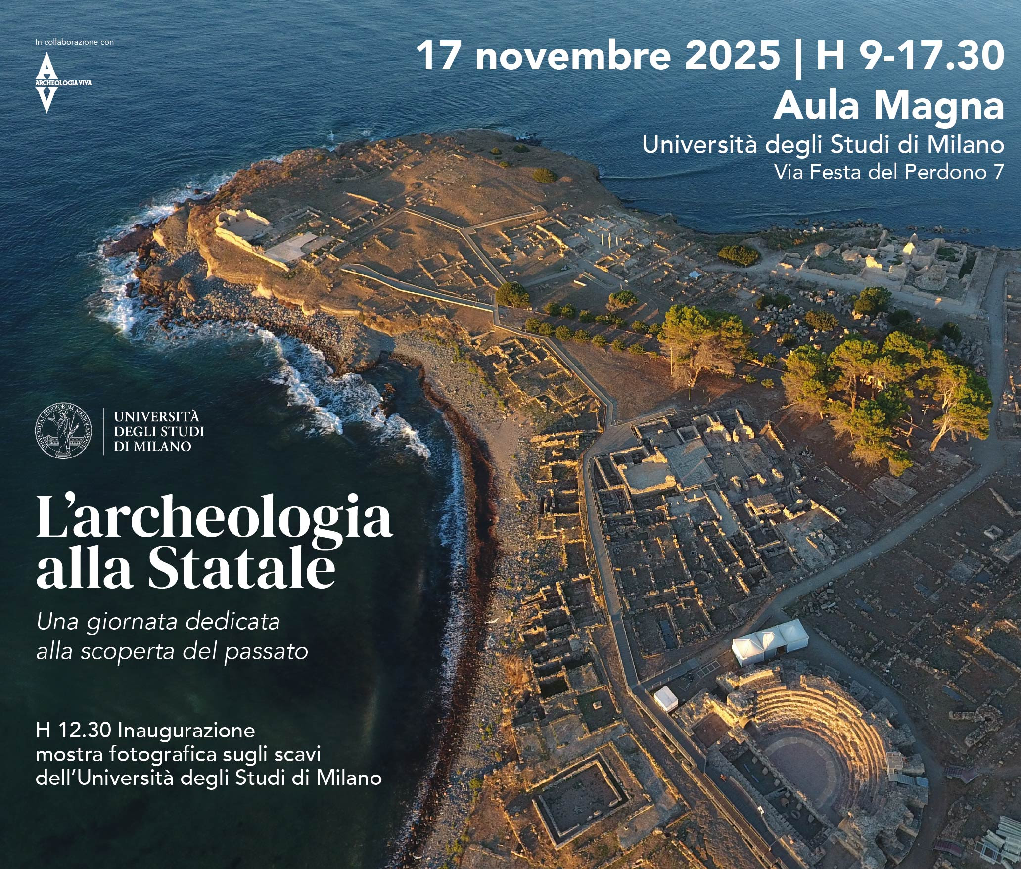 Il 17 novembre, dalle 9 alle 17:30, presso l’Aula Magna dell’Università degli Studi di Milano, si terrà la conferenza “L’Archeologia alla Statale”, dedicata alla valorizzazione delle attività di scavo, ricerca e divulgazione condotte all’interno dell’ateneo e sul territorio.